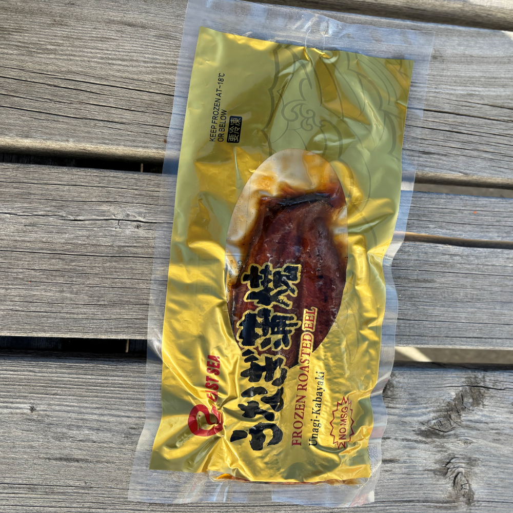 Ingredients: Eel, soy sauce, (water, soy beans, wheat, salt) sugar, amino acid, mirin, xanthan gum, caramel color, corn starch