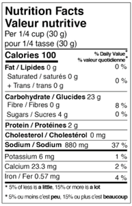 Ingredients: Corn starch, Enriched flour (flour, fungal amylase, niacin, iron, thiamine, mononitrate, riboflavin, ascorbic acid, folic acid), Seasoned salt (salt, sugar, spices, dehydrated onion, dehydrated garlic, corn starch, annatto, high oleic sunflower oil), Baking powder, Canola oil and/or Soybean oil, Calcium carbonate (dough conditioner), Sodium erythorbate (antioxidant).